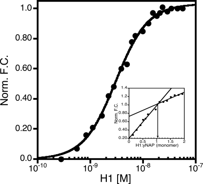 FIGURE 5. Binding and stoichiometry of H1 to yNap1. The normalized
