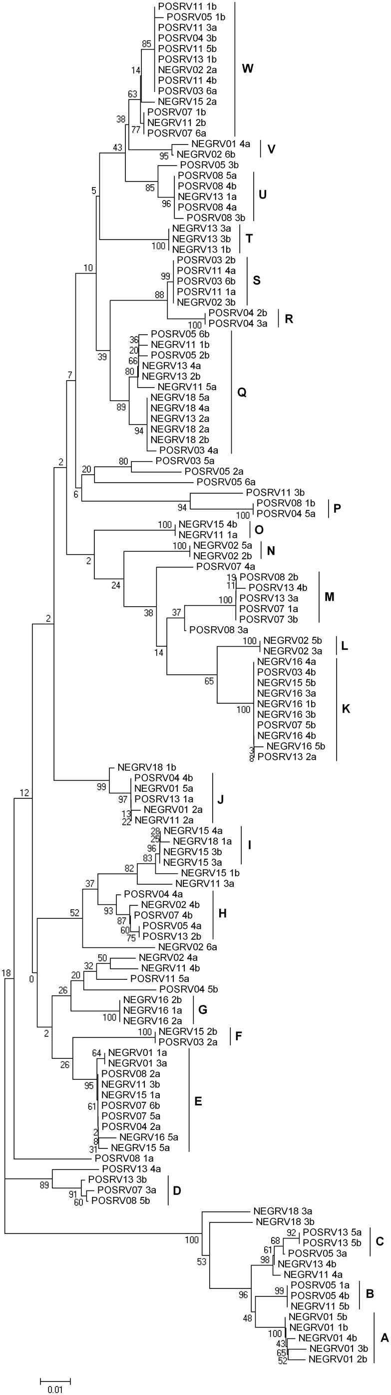 Figure 2. Neighbour-Joining Tree of MHC Sequences with Supertypes Labeled.Individuals are labeled with disease status ‘POS’ (Rv+) or ‘NEG’ (Rv−), population ID, individual ID and allele ID. Bootstrap support values are reported by each node.