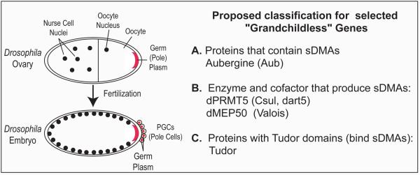 Figure 5. Proposed classification for selected Drosophila melanogaster grandchildless genes