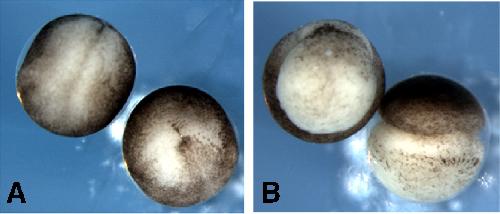 Fig. 3. PCNS overexpression phenotypearly neurula (stage 14). Injection of 1 ng RNA encoding PCNS resulted in gastrulation failure (Panel B; 96%, n = 28). Uninjected embryos were normal (panel A; 100%, n = 28).