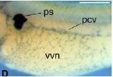 Fig. 2. Depletion of FRG1 inhibits vascular development. The mild (A) and severe (B) phenotypes of the FMO1-injected (40 ng) embryos show a reduction in vascular structures compared with the uninjected sides of the same embryos (D,E), as visualized by dab2 expression. (C,F) CMO-injected and uninjected sides of the same embryo, respectively. (G,J) FMO1-injected (40 ng) and uninjected sides of the same embryo, stained for msr. The arrowheads point to intersomitic veins. (H,I) Partial and full rescue of dab2 staining by co-injection with 40 ng of FMO1 and 500 pg of X. tropicalis frg1 mRNA. Co-injection of 40 ng of FMO1 with 1 ng of X. tropicalis frg1 mRNA was lethal. (M) The percentage of injected embryos displaying loss of dab2 and msr staining. (N) The percentage of embryos rescued by co-injection of FMO1 with frg1 mRNA. The numbers above the bars indicate the total number of embryos analyzed. Abbreviations: ps, pronephric sinus; vvn, vitelline vein network; pcv, posterior cardinal vein. Bars, 0.5 mm.