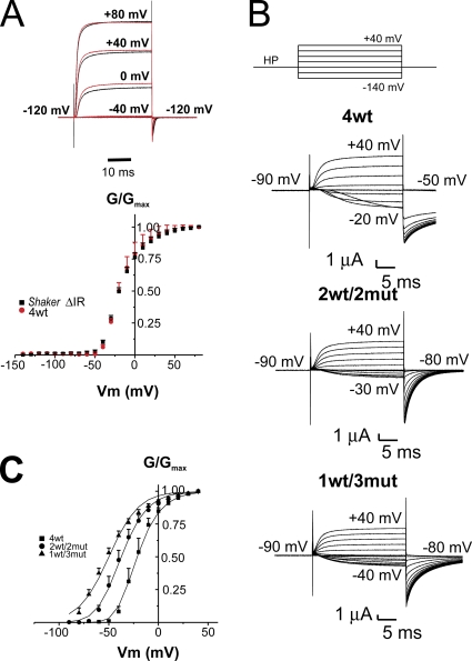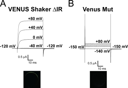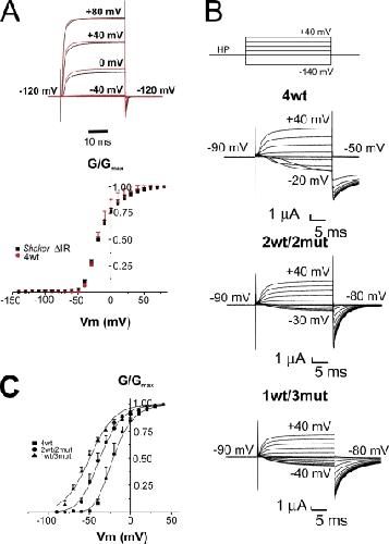 Yang, A hydrophobic element secures S4 voltage sensor in position in resting Shaker K+ channels. 2007, Pubmed , Xenbase