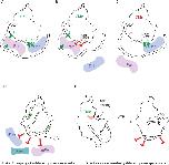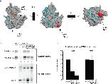 Figure 9. Model of inter- and intra-molecular interactions involving CKIε.Red blocked arrows represent inhibition of binding and green arrows represent positive binding interactions. (A–D) Back face of the kinase. (A) CKIε binds to Dsh and Per using different binding sites. (B) Mutation of CKIε N275 and R279 to the corresponding CKIα identity inhibits Dsh and Per binding; however, the C-terminal tail and at least one other residue in the kinase domain promote Per binding. (C) Changing two residues in CKIα to the CKIε identity along with adding CKIε's C-terminus enables Dsh to bind to CKIα. Per is unable to bind this chimeric kinase. (D) Binding of the autophosphorylated tail to the backside prevents the binding of substrates. Phosphorylated sites detected by mass spectrometry are shown on the tail. (E) View of the front side of the kinase. Left, CKIε's C-terminus is labile when it is not phosphorylated, and CKIε is able to bind to partners. Right, upon incubation with ATP, CKIε autophosphorylates and the C-terminus binds tightly to the back side of the kinase domain. This positions the peptide PEDLDRERREHDREER next to the active site and the phosphate recognition groove. The X's show identified crosslinks between the peptide and the kinase domain. |