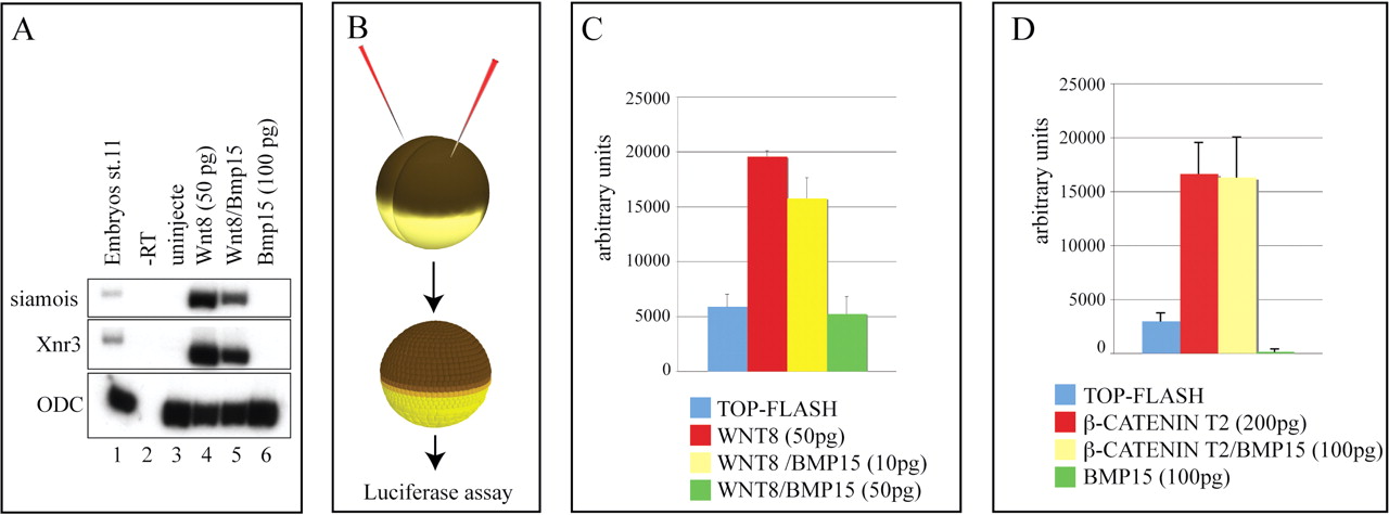 Bone morphogenetic protein 15 (BMP15) acts as a BMP and Wnt inhibitor during early embryogenesis.