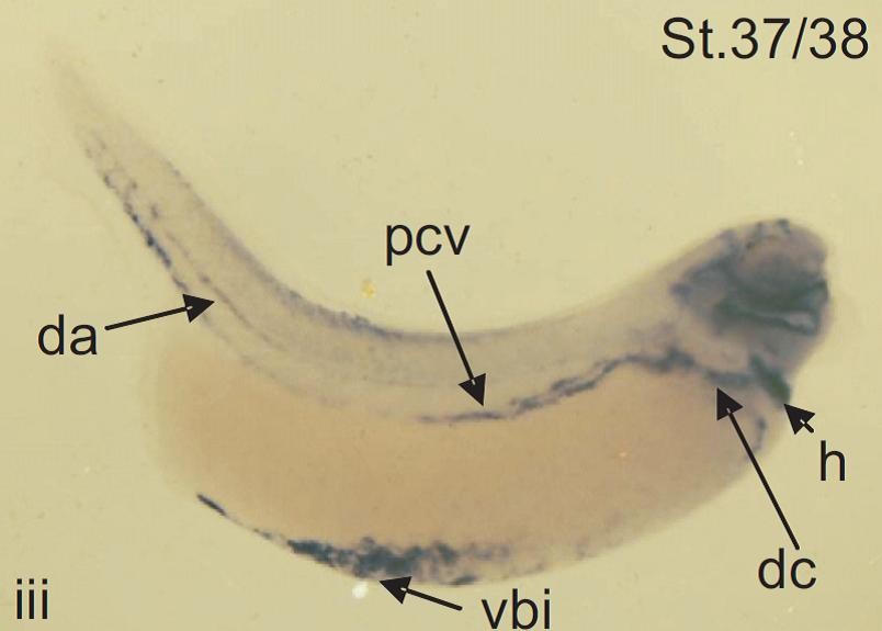 dlav: dorsal longitudinal anastomosing vessel ; da: dorsal aorta; pcv: posterio cardinal vein, ps: pronephric sinus. |