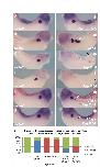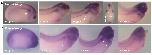 Fig. S6. Xbrachyury (t) expression is perturbed by lfng mis-expression. Since embryos injected with lfng mRNA or MOs had gross developmental phenotypes (such as a curled tail and shortness in length), we hypothesised that lfng mis-expression had earlier effects on development that affected pronephrogenesis indirectly. To determine this, X. laevis embryos were injected into both cells of a two-cell-stage embryo in the equatorial region with beta-galactosidase mRNA to act as a lineage tracer (red staining). Embryos were left to develop to stage 10-11, fixed, stained for the lineage label and whole-mount in situ hybridised for expression of a marker of the early mesoderm, Xbrachyury (Smith et al., 1991). (A) Injection of a control MO had no effect on Xbrachyury expression. (B-D) Overexpression of lfng (B) and depletion of lfng by injection of lfng MO1 (C) or lfng MO2 (D) statistically significantly reduced Xbrachury expression (P>0.05). These results confirm that Lfng mis-expression has early effects on mesodermal development that could be the cause of inhibited pronephrogenesis. |