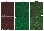 Fig.4. Colocalization of Diversin and Dsh. (A,B) Animal cap explants were prepared from stage-10 embryos injected with the following RNAs: Div-RFP (0.5 ng), Dsh-GFP (0.15 ng) and Fz8 (1 ng). Diversin colocalized with Dsh to cytoplasmic puncta (A, arrowheads), whereas Fz8 caused a non-uniform distribution of both Diversin and Dsh on the cell membrane (B). Scale bar: 20 μm. |
