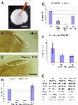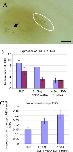 Fig. 5. Expressing SDF-1 in PGCs reduced the numbers of PGCs reaching the genital ridge and increased the ratio of ectopic PGCs to total PGC numbers. SDF-1 mRNA fused with the DEADSouth 3â²-UTR was co-injected with NLD mRNA into one of the vegetal blastomeres of 32-cell stage embryos. Embryos were fixed at stage 46, stained and scored. (A) Bleached and cleared embryos were observed using a stereomicroscope. PGCs were identified by their blue nuclei (white ellipse). Ectopic PGCs are indicated by arrows. Bar = 200 μm. (B) Effect of injected SDF-1 mRNA on the number of successfully migrating PGCs. The bar chart shows the results of two independent experiments, illustrated in different colors. In each bar chart, the vertical axis represents the mean number of PGCs per embryo and the horizontal axis shows the quantity of mRNA injected. The bars show the standard error. (C) Effect of injected SDF-1 mRNA on the proportion of ectopic PGC to total PGC numbers. Data are listed in Table 4.