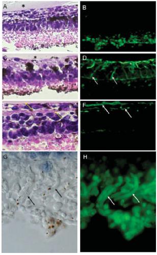 were positively stained for rhodopsin (G, H). GFAP-positive