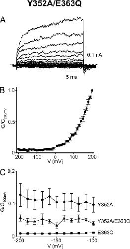 Perozo, Gating currents from a nonconducting mutant reveal open-closed conformations in Shaker K+ channels. 1993, Pubmed