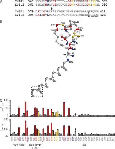 Sun, Exposure of residues in the cyclic nucleotide-gated channel pore: P region structure and function in gating. 1996, Pubmed
