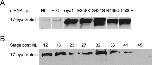 Figure 2. Expression of eya1 after injection of mRNA encoding eya1 proteins into Xenopus embryosEmbryos were injected (inj.) with 250 ng of mRNA, and protein isolated from two embryos was loaded on to each lane. (A) A Western blot that shows that mRNAs encoding eya1 and four mutant variants produce detectable protein in stage 12 embryos. Anti-T7 antibody was used to detect proteins. (B) A Western blot that shows that eya1 protein made from injected mRNA persists through stage 41. Anti-T7 antibody was used to detect proteins. NI, non-injected control. |