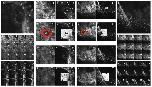 Images were captured starting from the left lateral side of the embryo and then moving medially. (A) A composite of stacks (B) and (C). (B) Each image of a confocal stack using phalloidin as a stain. (C) Each image of a confocal stack detecting acetylated α-tubulin. Enlargements of companion images show how phalloidin staining highlights the otocyst and allows an easy estimate of otic vesicle (vOt) size. The otic vesicle is coloured red in B 5. The appearance of sensory tissue in the otocyst (Ost) can be seen in C 5 and C 8 by reactivity to the anti-tubulin antibody and are selectively coloured green. In C 11 the neurites (arrowheads) connecting the VIII cranial nerve with the otocyst on the ventral medial side are coloured green. Scale bar in (A), 50 μm. An, anterior; D, dorsal; Pos, posterior; V, ventral; VII, VII cranial nerve. |