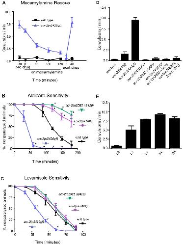 Culetto, The Caenorhabditis elegans unc-63 gene encodes a levamisole-sensitive nicotinic acetylcholine receptor alpha subunit. 2004, Pubmed
