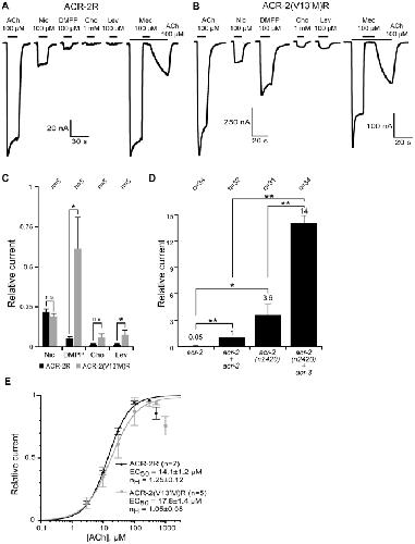 Squire, Molecular cloning and functional co-expression of a Caenorhabditis elegans nicotinic acetylcholine receptor subunit (acr-2). 1995, Pubmed , Xenbase