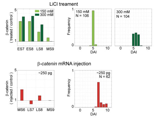 Figure S12. Quantitation of β-Catenin at Earlier Stages Does Not Alter Conclusions At all stages measured, β-catenin mRNA injection has lower effect on β-catenin protein level, and yet gives more severe phenotypes. |