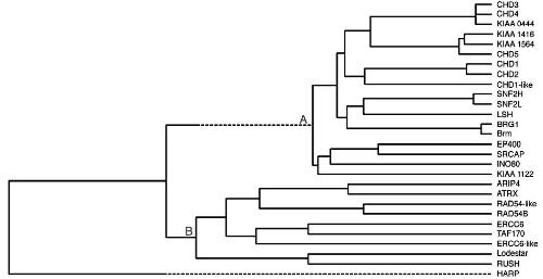 Fig. 2. Sequence similarity tree of the human SNF2-domain containing proteins. The amino acid sequences comprising of the SNF2-domains of the human