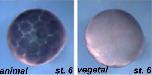 snw1 ( SNW domain containing 1 ) gene expression in Xenopus laevis embryos, NF stage 6, as assayed by in situ hybridization, animal and vegetal view. This research was originally published in The Journal of Biological Chemistry. Wang et al enopus skip modulates Wnt/beta-catenin signaling and functions in neural crest induction.April 2, 2010; 285 (14):10890-10901. The American Society for Biochemistry and Molecular Biology. Reproduced with permission. |