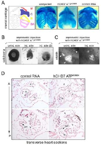 Figure 3. Overexpression of CHD7 ATPase mutant in Xenopus recapitulates CHARGE traits