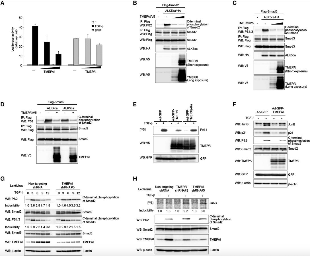 TMEPAI, a transmembrane TGF-beta-inducible protein, sequesters Smad proteins from active participation in TGF-beta signaling.
