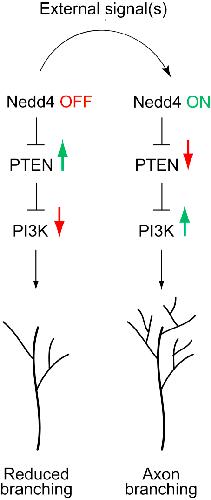 E3 ligase Nedd4 promotes axon branching by downregulating PTEN.