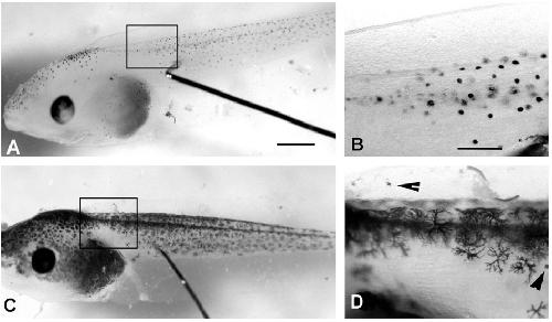 Fig. 1. Melanophores in stage 35/36 periodic albino Xenopus following neural crest