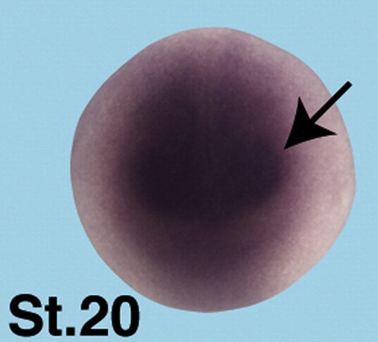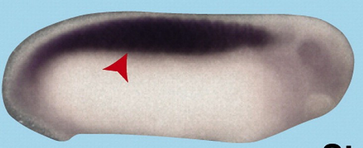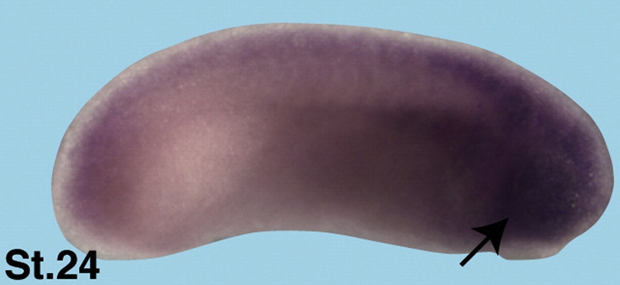 Suppl. Fig. 6. Spatial expression pattern of Dicer. Dicer is expressed ubiquitously but transcripts are accumulated in anterior neural tissue (black arrowheads). |