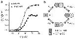 Figure 4. Quantification of cooperativity in Hv1. (a) Voltage dependence of activation of the MS/ZS heterodimer and the 153C-WT linked dimer fitted with the opening model shown in b. For MS/ZS Hv1: ϕMS,MS = ϕMS,ZS = ϕZS,ZS = 60 ± 35, for153C-WT Hv1: ϕ153C,153C = ϕWT,WT = 95, ϕ153C,WT = 23 ± 2. See text for details. (b) Model of opening of the two pores of Hv1. Cooperativity is quantified by the parameter ϕ, which is the ratio between the open probability of a given subunit when the neighboring subunit is in the open conformation and the open probability of the same subunit when the neighboring subunit is in the closed conformation. ϕ > 1 means that the opening of one pore makes it easier for the other pore to open (positive cooperativity). The scheme represents the case of a heterodimer made of subunit A (gray) and subunit B (white) with different voltage dependencies of activation (KA and KB). Subunit A can be 153C or MS, and subunit B can be WT or ZS. The transition from square shape to round shape represents the conformational change associated with opening (see also Supplementary Fig.4).