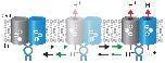 Figure 6. Proposed basic gating mechanism for the Hv1 channel. Opening of one subunit favors the opening of the neighboring subunit. As a result, the two subunits tend to be in the same state, either both closed or both open. With a cooperativity factor ϕ = 60 the total fraction of channels with only one open pore can never be higher than 12%. The represented states are connected by at least two transitions: a voltage sensing transition (black arrows) responsible for the fast component of sensor movement detected by VCF, and an opening transition (green arrows). Based on the similarity between the VSD of Hv1 and the VSDs of other voltage-gated channels, the voltage-sensing process is represented as upward movement of charges (shown in white). The C-termini of the two subunits are shown as coiled-coil.