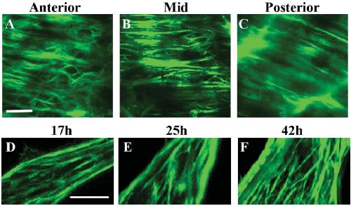 at the somite borders. Scale bar � 20 mm. D�F: In contrast, anterior (D), mid (E), and