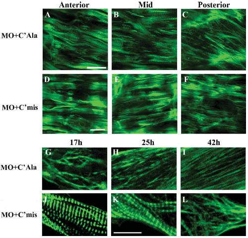 sarcomere organization. A�C: Images from embryos rescued with C�Ala mRNA in MO� background.