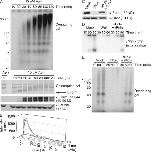 Sogo, Fork reversal and ssDNA accumulation at stalled replication forks owing to checkpoint defects. 2002, Pubmed