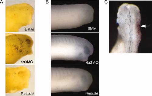 Pilot morpholino screen in Xenopus tropicalis identifies a novel gene involved in head development.