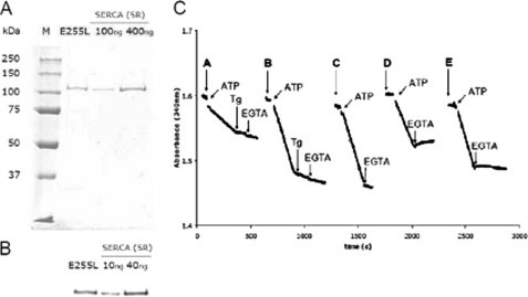 Clausen, Roles of Leu249, Lys252, and Leu253 in membrane segment M3 of sarcoplasmic reticulum Ca2+-ATPase in control of Ca2+ migration and long-range intramolecular communication. 2003, Pubmed