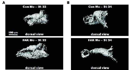 Mesodermal defect in late phase of gastrulation by a targeted mutation of focal adhesion kinase, FAK.