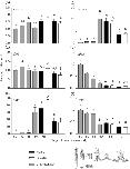 Fig. 2. Brain developmental profiles of sex steroid-related genes during Silurana tropicalis metamorphosis and adulthood. Transcript levels of eralpha (a), cyp19 mRNA and activity (b) erbeta (c), srd5alpha1 (d), ar (e) and srd5alpha2 (f) were measured in whole brains from Nieuwkoop and Faber (NF) stage 50 until adulthood (y-axis on the left). Levels of mRNA are expressed relative to NF 50 and are normalised to RNA content. Enzyme activity for cyp19 (b) was measured from NF 52–66 (y-axis on the right) and is expressed in fmol/h normalised to protein content. Bars represent the mean ± SEM. Different letters indicate statistically significant differences between stages (n = 5–8 pools; P<0.05). Brain samples for NF 66 and adulthood were statistically analysed separately from NF 52 to NF 60 samples (for details, see Materials and methods). Significant differences in enzyme activity levels are indicated by small letters (n = 5–6; P<0.05). Note that the scales of the y-axis vary between genes. A, adult.