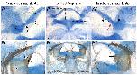 Frontal view of a neurula stage Xenopus embryo hybridized with efnb2 probes. |