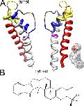 Figure 2. S5–pore loop–S6 segments of the BK channel and the relative size of the paxilline molecule. (A) A homology model of the BK channel S5–pore loop–S6 structure was generated based on alignment with Kv1.2 and the available Kv1.2 crystal structure. Coloring identifies segments used for generation of chimeras as follows: red, S5; yellow, first half of pore loop; blue, second half of pore loop, including so-called turret; gray, S6. Orange residues are those that influence iberiotoxin binding (Giangiacomo et al., 2008). G311 in S6 is highlighted in magenta. A space-filling model of paxilline (to the same scale) is positioned adjacent to an S5 helix, but this positioning is not meant to imply anything about the position of paxilline in a blocking site. Note that the actual topology of the BK turret is entirely unknown. Furthermore, this cartoon does not take into account the likely large width of the BK central cavity. (B) The chemical structure of paxilline is shown.