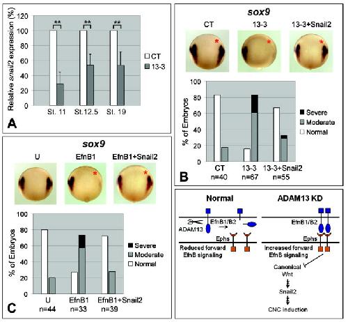 Snail2 is downstream of EfnB and canonical Wnt signaling to mediate ADAM13 function in CNC induction