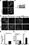 Figure 2. Down-regulation of p34 inhibits the formation of remodeled actin and decreases GLUT4 translocation. (A) L6GLUT4myc myoblasts were transfected with 200 nM of nonrelated (NR) siRNA control or p34 siRNA for 72 h. Total cell lysates were prepared, and 10 μg protein was loaded and immunoblotted for p34 and actinin-1 (as loading control). Representative blots of five independent experiments are shown. (B) Myoblasts transfected with NR or p34 siRNA were treated with/without insulin for 10 min followed by costaining of surface GLUT4myc in the nonpermeabilized state and then permeabilized to label actin filaments with rhodamine-phalloidin. Representative images of five independent experiments are shown. Bars, 20 μm. (C) Quantification of changes in insulin-stimulated dorsal actin remodeling relative to NR control (mean ± SE). (D) Quantification of fold increases in surface GLUT4myc relative to NR basal in NR and p34 knockdown conditions (mean ± SE, #p < 0.05). (E) p34 knockdown abolishes cortical actin remodeling in rounded-up myoblasts and prevents gain in surface GLUT4myc in response to insulin. Bars, 10 μm. |