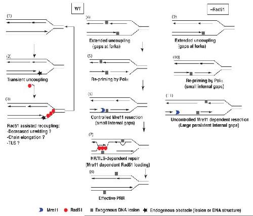 Figure 6. A model for possible roles of Rad51 during DNA replication. See text for explanation.