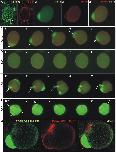 Fig. 3. Modulation of xKIF13B expression affects morphology, dynamics of protrusion forrmation and PIP 3-mediated polarity in isolated PGCs. (A and B) PIP3 is enriched in the protrusions forrmed by PGCs (A and Aâ²) confocal microscopy images of a migrating PGC in a living embryo at stage 31. Images were taken in two channels: GFP to visualize EGFP_GRPIPH_DE reporter protein as a read-out for the PIP3 signal (A) and RFPto visualize farnesylated RFP (mRFP) labeling the cell membrane (Aâ²). The arrow depicts the PIP3 enrichment in the protrusion at the leading edge of the cell. (BâBâ²) Fluorescence microscopy images of a PGC isolated from stage 31â32 embryos. Images were taken in two channels: (B) for GFP, to visualize EGFP_GRPIPH_DE reporter protein as a read-out for the PIP3 signal, (Bâ²) for RFP to visualize farnesylated RFP (mRFP), labeling the cell membrane. The merged image (Bâ²) reveals enrichment of PIP3 in the protrusion. (CâE) Representative examples for membrane dynamics and PIP3 distribution in cultured PGCs upon modulation of xKIF13B activity. PGCs were isolated from embryos that had been injected with 0.2 ng of the EGFP_GRPIPH_DE mRNA alone (C), co-injected with 10 ng of xKIF13B MO1 (D and E), or co-injected with 0.5 ng of the xKIF13B ORF_DE mRNA (F). Images were selected from time-lapse movies taken for 5 mm with a 10 s per frame mode. Arrows indicate PIP3-enriched membrane extensions formed by PGCs. (G) xKIF13B localizes to the membrane of PGC protrusions. 80Ã-snapshots from the confocal time-lapse movie illustrate the intracellular localization of xKIF13B in an isolated PGC on fibronectin. Cells were isolated form tailbud stage embryos co-injected at two-cell stage with 0.2 ng of the EGFP_GRPIPH_DE and 0.3 ng of the dsRed_xKIF13B ORF_DE mRNA. Images were taken in two channels: GFP to visualize the PIP3 signal (left image) and RFP for xKIF13B (middle image). The arrow points to xKIF13B enrichment at the membrane of the PGC protrusion. |