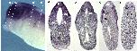 Sppl. Fig 2. xKIF13B expression on the nervous system and migrating neural crest cells at tailbud stage. XKIF13B mRNA was detected by wmish. Dotted lines indictate section palnes shown in (q-d). Abbreviations: pe prosencephalon; op olfactory placode; ev eye vesicle; me mesencephalon; hb hindbrain ; ov otic vesicle; nc neural crest; sc spinal cord; no notochord. |