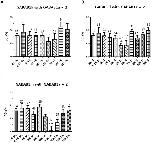 Figure 6. The functional effects of three novel human isoforms, GABAB1k, l, and m.Inhibitory effects were measured in Xenopus oocytes 5 days after injecting GABAB1a, GABAB2 cDNA and GIRK1, GIRK2 cRNA along with GABAB1k, l, or m cDNA. For vector controls, vectors were injected in the same amounts as used for the isoforms. Isoform and vector injection amounts varied from 0 to 15 times of GABAB1a injection amount. Used GABA concentration was 3 mM, an approximate maximum response concentration. For each batch, individual GIRK currents from isoform injected oocytes were normalized to percentage by the average vector control current. For nonparametric tests, the individual percent values were changed to log10. After one-way ANOVA and Dunnett's tests, one-tailed unpaired Student's t-tests were performed between no isoform injected groups and the isoform injected groups. A. GABAB1k had no inhibitory effect. B. GABAB1l data showed significant differences by ANOVA and Dunnett's tests (p = 0.0058), and caused significantly decreased GIRK currents at 5× and 6× GABAB1l (**p = 0.0014 and *p = 0.0229, respectively). C. ANOVA and Dunnett's tests showed the significant differences of GABAB1m data (p = 0.0040). GABAB1m showed significant decreases at 11× and 12× GABAB1m (***p = 0.0003 and **p = 0.0064, respectively). The numbers of recorded oocytes are shown above the bars by each group. Data are expressed as the mean ± SEM. |