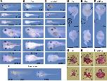 Gastrointestinal malformation induced by rapamycin treatment and dn-Rheb mRNA injection. (A) Control embryo at stage 45 (95.3 hpf) for B and C. (B) Rapamycin-treated embryo at stage 45. Embryos were treated with 40 μM of rapamycin and cultured. Pigmentation defects were stronger than Stage 42. Both size and shape of gut were affected by rapamycin treatment (100%, n = 15). (C) dn-Rheb mRNA (200 pg) injected embryo at stage 45. Both size and shape of gut were also affected by dn-Rheb mRNA injection (100%, n = 15), but pigmentations were observed like control. Dotted lines mean sectioned sites for histological analyses shown in GâI. (DâF) Surgically-resected guts from embryos shown in AâC. Upper and under panels respectively indicate ventral and dorsal views. Secondary coiled structure of gut was not detected in rapamycin-treated and dn-Rheb mRNA injected embryos. 1°, primary coil; 2°, secondary coil. The diagram of gut structure was shown on the bottom-left corner. (GâI) Histological sections created from embryos shown in AâC. In both rapamycin-treated and dn-Rheb mRNA injected embryos, gut formations were disordered and thicker than the case of control embryo. bd, bile duct; li, large intestine; lu, lungs; pa, pancreas; si, small intestine; st, stomach. (J) Long cultured embryos in 20 μM of rapamycin (176 hpf). All embryos were swollen like balloon but survived until 200 hpf maximum. The scale bars of A, B, and C and of D, E, and F represent 2 mm and 0.5 mm, respectively.