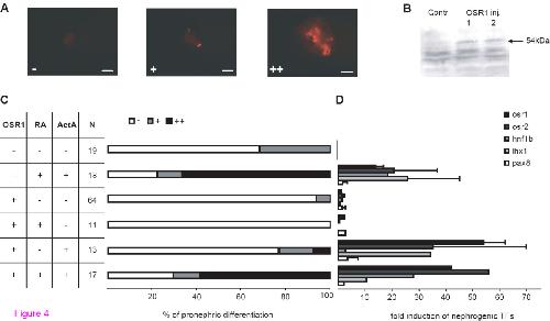BACKGROUND: The three distinct types of kidneys, pronephros, mesonephros and metanephros, develop consecutively in vertebrates. The earliest form of embryonic kidney, the pronephros, is derived from intermediate mesoderm and the first expressed genes localized in the pronephros anlage are the transcription factors osr1, osr2, hnf1b, lhx1 and pax8, here referred to as the early nephrogenic transcription factors. However, the pathway inducing nephrogenesis and the network of theses factors are poorly understood. Treatment of the undifferentiated animal pole explant (animal cap) of Xenopus with activin A and retinoic acid induces pronephros formation providing a powerful tool to analyze key molecular events in nephrogenesis.