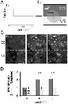 Figure 2. Localized response to spatially defined continuous stimulation.(A) Laminar flow interface profile over time. (B) Schematic depicting two regions within a single AC explant subject to different stimulation conditions: constant stimulation (CS; upper region; DEX & DFA) and no stimulation (NS; lower region; DFA). (C) Images of the explant subjected to CS and NS depicted in (B) at the beginning (left), 60 minutes (middle), and 120 minutes (right). The dotted line marks the interface, which correlates to the line between CS and NS regions in (B). (D) Intensity ratios of GFP levels in nucleus relative to cytoplasm. Error bars represent standard deviations for 20 cells (** indicates p<0.01). Variable expression of GR-nuc-GFP biosensor across the animal cap is due to the uneven inheritance of mRNA encoding GR-nuc-GFP into 1 or 2-cell stage embryo.