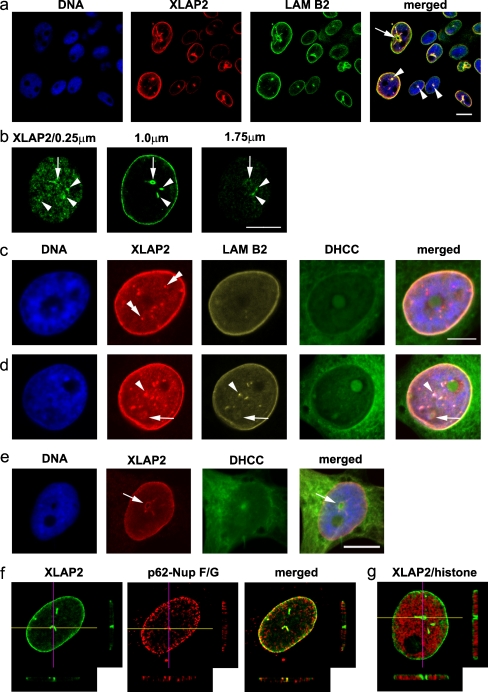 Embryonic and adult isoforms of XLAP2 form microdomains associated with chromatin and the nuclear envelope.