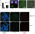 Figure 10. Endogenous UNG2 transiently colocalizes with CENP-A and phospho-H2AX at centromeres and lines of laser damage.A. Example deconvolved high-resolution images of 143b cells exhibiting different patterns of UNG2 localization. Top row images resemble S-phase replication foci with colocalization of UNG2 (green) with phospho-H2AX(blue) but not with CENP-A (red). Bottom row images demonstrate detectable three-way colocalization of CENP-A (red) with UNG2 (green) with phospho-H2AX (blue), as indicated by the measured overlap mask (white). Scalebarâ=â10 m B. Example confocal images of 143b cells subjected to laser exposure using methods described elsewhere [7]. Top left, nuclei detected with DAPI (blue). Bottom left, colocalization of phospho-H2AX (red) with UNG2 (green) in lines of laser damage. Top right, endogenous CENP-A (detected with ACA) is shown alone (white) to mark the lines of laser damage and centromeres (foci). Bottom right, UNG2 channel alone (green). |