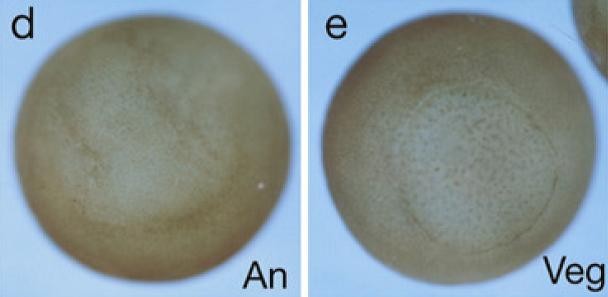 clspn (claspin) gene expression in Xenopus laevis embryos, NF stage 7, as assayed by immunohistochemistry. Animal (An) and Vegetal (Veg) views.